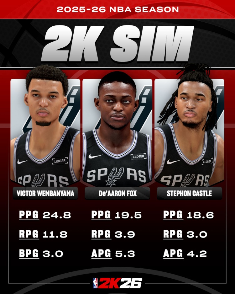 2K模擬數(shù)據(jù):文班24.8分11.8板3封蓋 ??怂?9.5分 卡斯?fàn)?8.6分