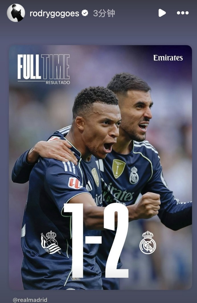 9月14日訊 皇馬2-1擊敗皇家社會(huì),賽后本場未登場的羅德里戈更新官方海報(bào)慶祝球隊(duì)勝利。