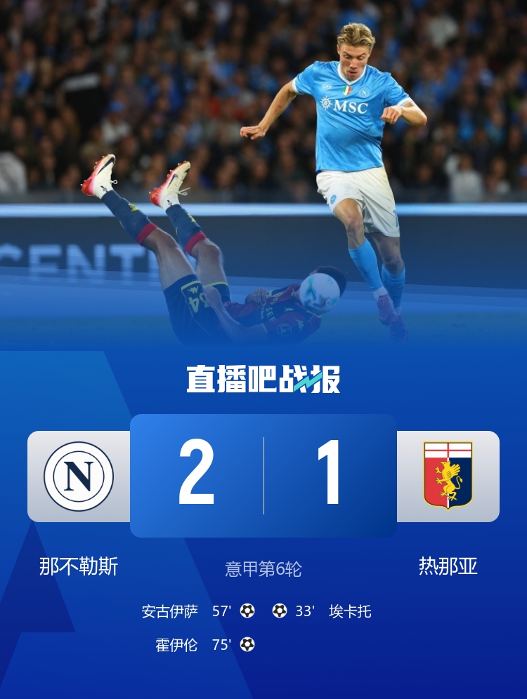全場比賽結(jié)束,那不勒斯2-1熱那亞。