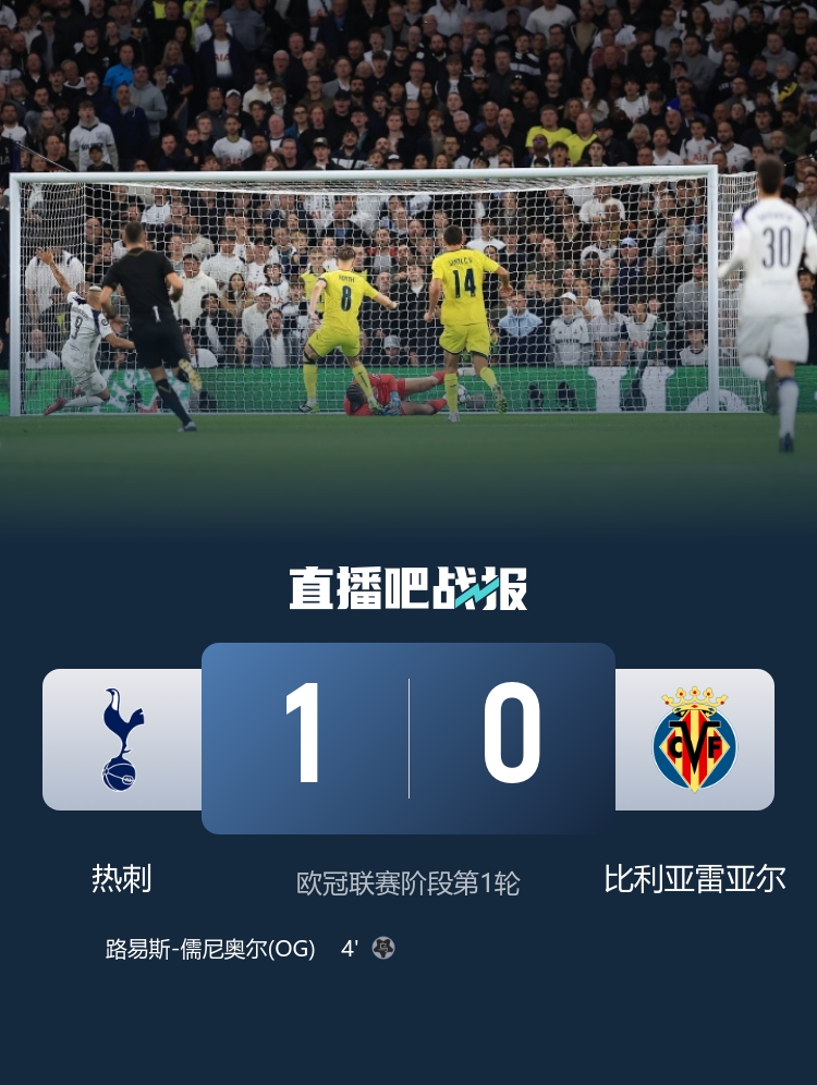 9月17日訊 北京時間9月17日凌晨3:00,歐冠聯(lián)賽階段第1輪,熱刺坐鎮(zhèn)新托特納姆熱刺球場迎戰(zhàn)比利亞雷亞爾。上半場貝里瓦爾造成路易斯-儒尼奧爾離譜黃油手烏龍,熱刺暫1-0比利亞雷亞爾;下半場兩隊均未能改寫比分,最終熱刺1-0比利亞雷亞爾,收獲開門紅。